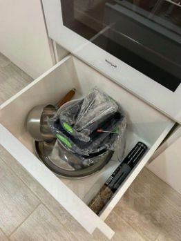 Стильная мебель, вся необходимая бытовая техника, посуда, бокалы, посудомоечная машина, рожковая кофемашина, двухкамерный холодильник, микроволновая печь, варочная панель, духовой шкаф, мягкие стулья на количество гостей.