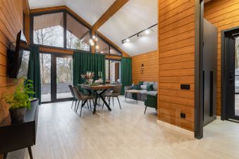 Новый дом в экологически чистом месте, на территории Сергиево-Посадского лесничества, в 3-х км от святого источника Ключ Гремячий. Дом выполнен в современном стиле Барнхаус. Лаконичные цвета, натуральное дерево создает атмосферу спокойствия и тепла. Из панорамных окон гостиной открывается потрясающий вид на лес, а высокие потолки дают ощущение простора.