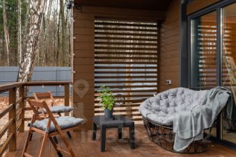 Пространство большой полуоткрытой террасы в любую погоду располагает к чтению любимой книги на свежем воздухе или чашечке утреннего кофе под пение птиц.