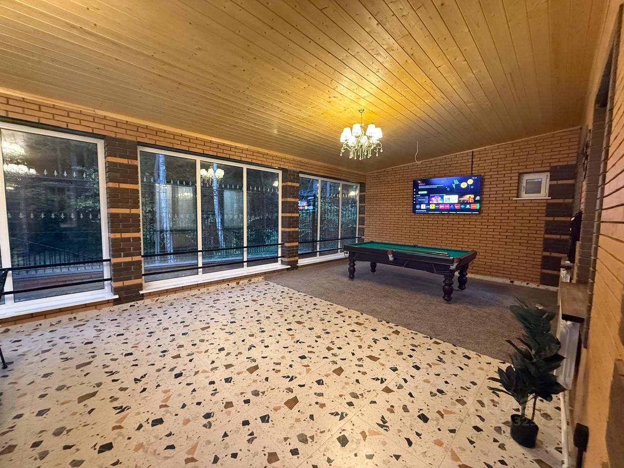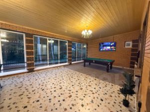 Современный двухэтажный коттедж площадью 300 м2 расположен в 37 км от МКАД по Калужскому шоссе.