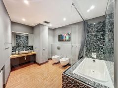 В доме: Бассейн, Посудомоечная машина, Стиральная машина, Душевая кабина, Сауна, Камин, Спутниковое/кабельное телевидение, Кондиционер, Охрана, Гараж, Европланировка, Ванна, Интерьер в современном стиле, Spa-зона, Ремонт - дизайнерский, Телефон, Телевизор, Мебель на кухне