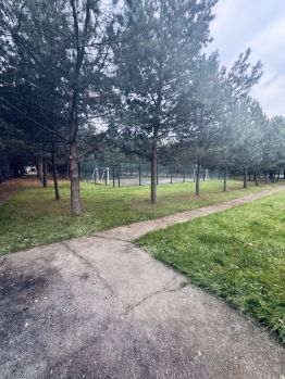 Есть большой участок засаженный соснами, где можно гулять и дышать свежим воздухом, на котором также расположена спортивная площадка (в удовлетворительном состоянии).