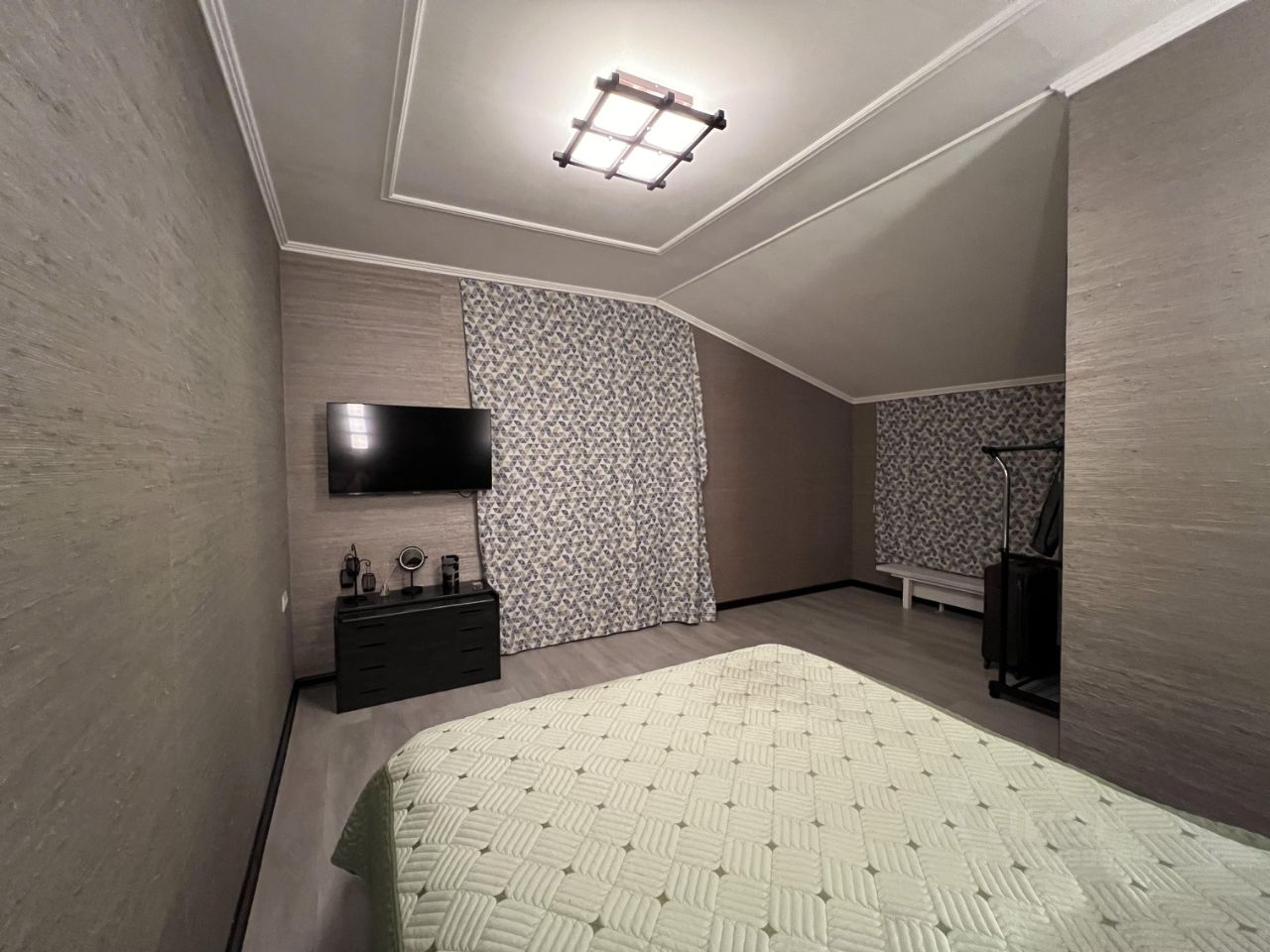 2 этажа. На первом расположены санузел, кухня, гостиная и спальня. На втором - еще одна спальня. Дом очень теплый, уютный и полностью укомплектован всем необходимым. Заезжай и живи.