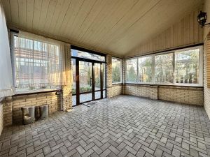 На веранде установлены пластиковые окна-слайдеры, которые в теплое время позволяют отдыхать на свежем воздухе.