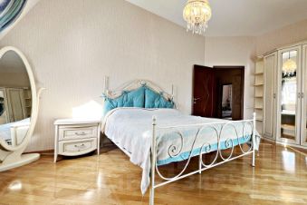 Холл оборудованный шкафами, 3 спальни, кабинет, 2 раздельных с/у, ванная с гидромассажем, постирочной, открытый балкон с выходом их спальни, TV, кондиционеры.