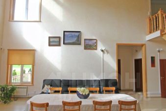 Двухэтажный коттедж площадью 300 м2 расположен в 30 км от МКАД по Новорижскому шоссе, в загородном комплексе "Алексино-Истра" вблизи Истринского водохранилища.
