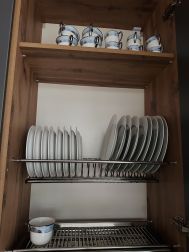 вся необходимая посуда для приготовления пищи (сковорода, кастрюля), столовые приборы, тарелки, чашки, бокалы;