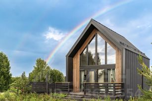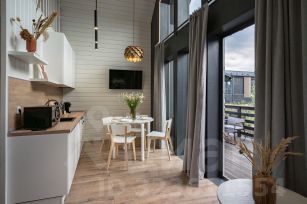60 квадратных метров теплого дерева, мягкого света и стильного дизайна создают ощущение загородного убежища, наполненного спокойствием и гармонией.