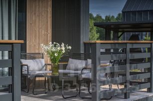 терраса вашей мечты настолько она бережно обнимает коттедж по периметру, что можно неспеша прогуливать по ней с утренней чашкой кофе.