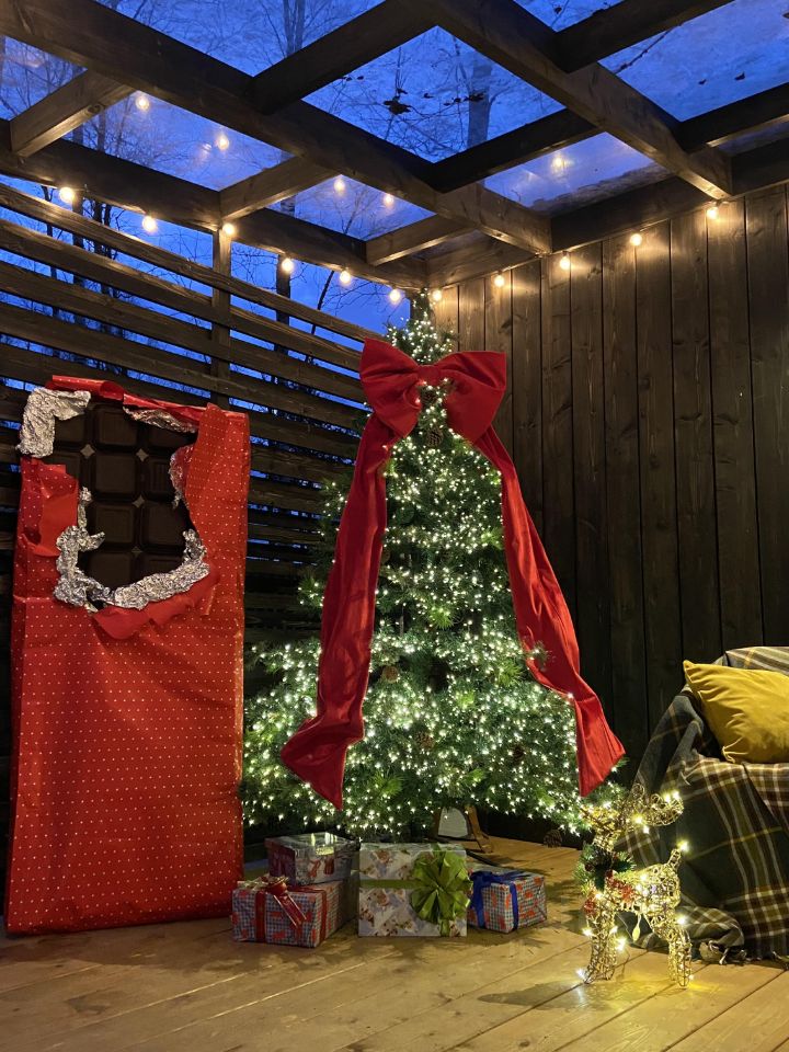 Территория участка 18 соток,в темное время суток освещается. Для уютных посиделок есть костровая зона с креслами и мангалом ,освещается ретро фонариками