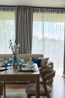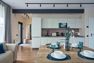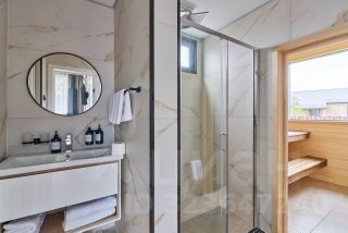 Вместимость: до 4 человек в меньшем доме и до 8 — в большем; итого до 12 гостей можно разместиться