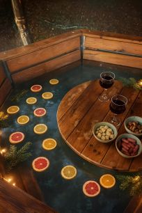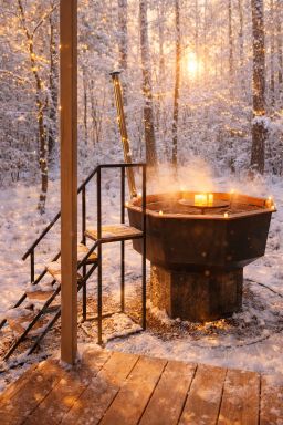 Сибирский банный чан - находится на территории домика, он только в вашем распоряжении Мангальная зона с шампурами. Решетки, как правило остаются после предыдущих гостей, но их наличие не гарантируем, а также их внешний вид.