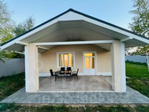 Дом одноэтажный, 130 м, три просторные комнаты, 2 спальни и гостиная с кухней 40 м. Веранда с мебелью с выходом в сад. Второй этаж мансардный, можно использовать для хранения.