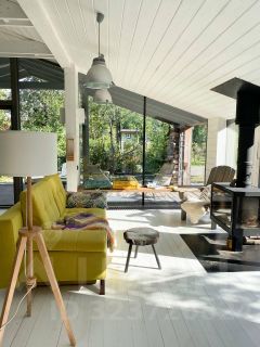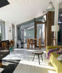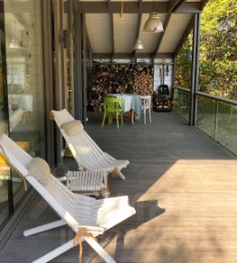 Просторная веранда с видом на участок, куда так приятно выйти с чашкой чая и пледом