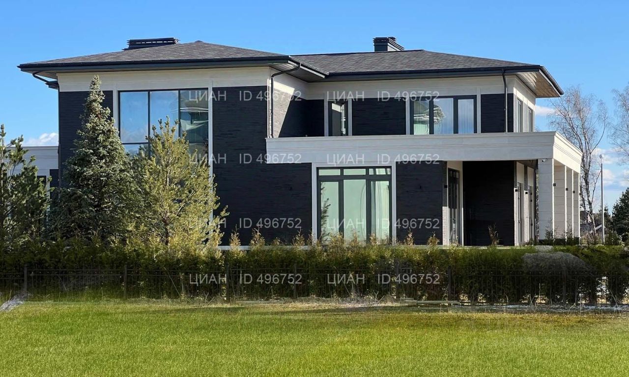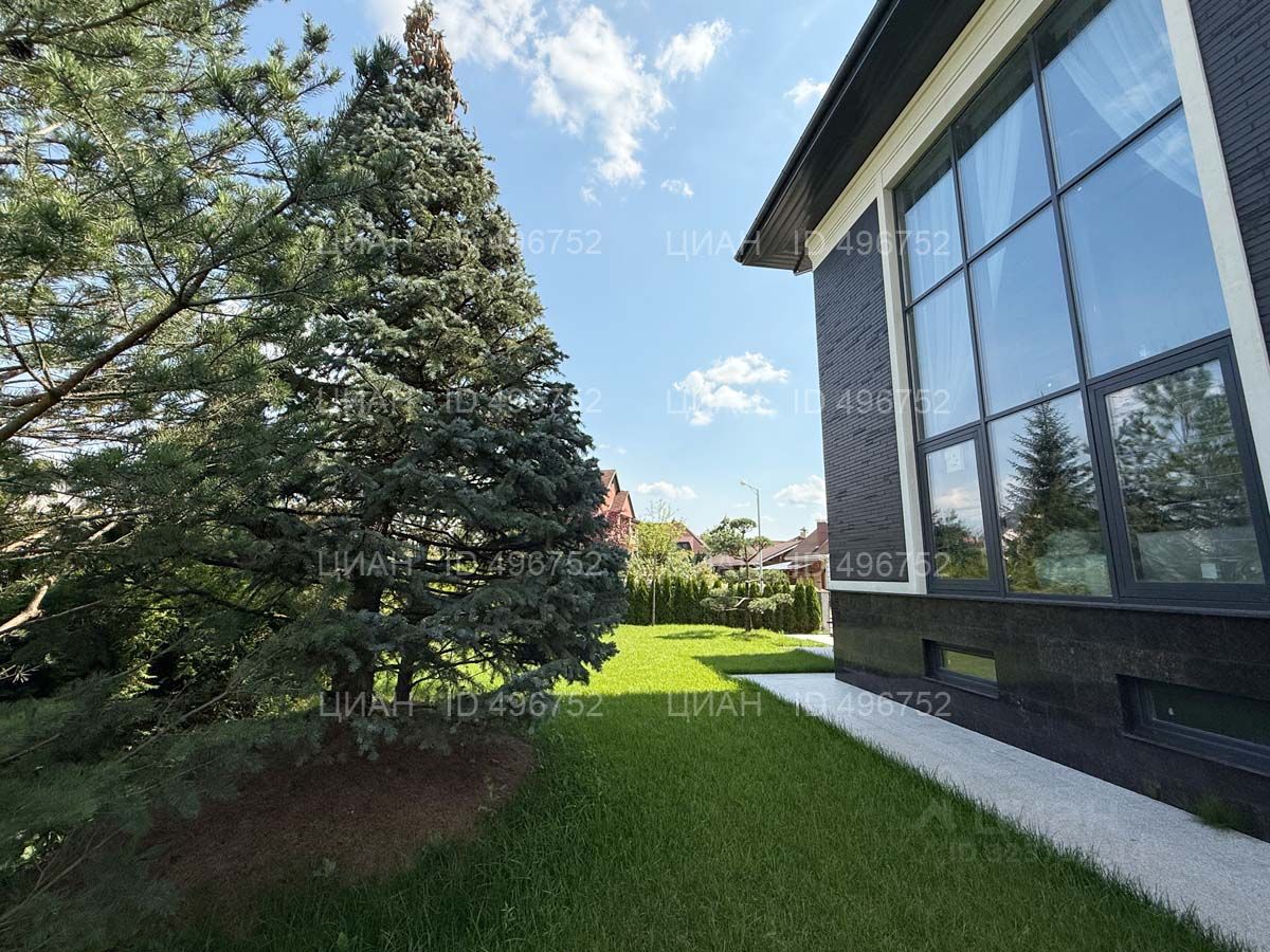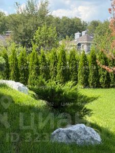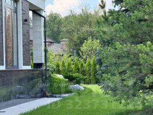 На участке газон, бонсай, туи, деревья, голубые ели, можжевельник. Установлен автоматический полив. Забор по периметру участка. Ворота с электроприводом, откатные.