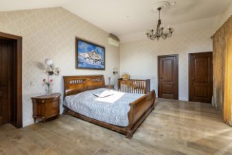 Дом кирпичный, кровля из натуральной черепицы, деревянные окна, из которых открывается прекрасный вид на участок, в интерьере преобладает отделка из натурального дерева.