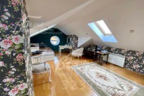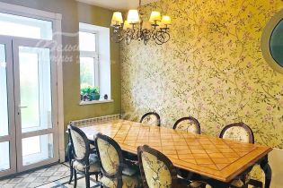 Описание внутренней отделки: стены на первом этаже под покраску неординарной расцветки. На кухне - обои, в с/узлах - везде плитка. На 2 этаже на стенах - обои, все в цветочной тематике. Везде, где есть плитка, теплые полы. Многоуровневые потолки, необычные люстры. Под окнами от пола - конвекторные радиаторы. Лестничный марш облицован дубом с подсветкой..