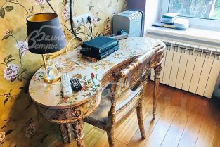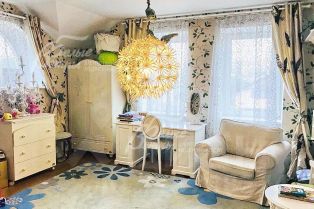 Мебель, оборудование: весь дом полностью оборудован мебелью. В спальнях гарнитуры, много дополнительной необычной мебели в виде сундуков, столешниц, дамских тумб, необычные кресла и диваны от итальянского дизайнера. Дорогой кухонный гарнитур из дерева, большой обеденный стол, стулья. Варочная панель, духовка, посудомойка, холодильник, свч-печь. Удивительные люстры! Все привозилось на заказ, с различных уголков земли. Цветочная тематика, мебель в виде цветов, на обоях цветы, в прихожей шкаф-купе со стихотворением на дверях, много красивых деталей в интерьере..