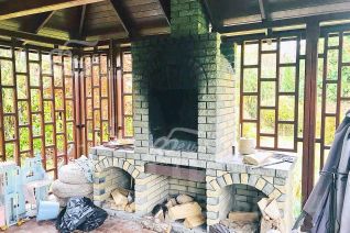 Дополнительные строения: - Крытая беседка-барбекю в стиле дома (пол плитка, ограждение - дерево, крыша - черепица) с каменной печью-мангалом.