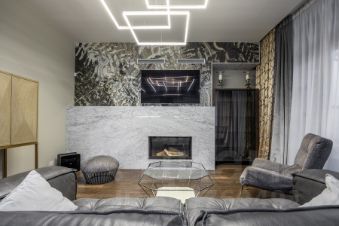 На третьем этаже: холл, ванная комната с душевой кабиной и ванной, спальня с просторной гардеробной комнатой, комната с домашним кинотеатром, кабинет с выходом на балкон.
