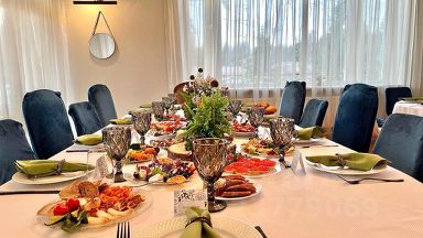 Комфортное размещение на банкет до 30 человек, на ночь до 23 человек . Всего 5 изолированных спален +спальные места в кинозале и на цокольном этаже.