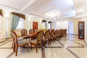 ОБ УЧАСТКЕ: участок 11 соток терраса крытая беседка с зоной барбекю парковка на 10 авто О ДОМЕ: 1100 м.кв., 5 этажа Комфортное размещение за столом до 40 человек, на ночь до 32 человек. В коттедже : большой банкетный зал с камином, TV, караоке на 35 гостей (с возможностью установки дополнительных столов для увеличения посадочных мест за банкетным столом или организации фуршетного стола/стола для детей в том же зале в диванной зоне) 10 изолированных спален на 2, 3 и 4 этажах для комфортного размещения 26 человек (с возможностью организации дополнительных 6 спальных мест в комнатах отдыха на первом и цокольном этажах) 9 санузлов (в т.ч. персональные совмещенные санузлы в 7 спальнях) сауна, бассейн с подогревом, тренажёрный зал, комната отдыха на цокольном этаже комната для переговоров возле банкетного зала с кожаной мебелью (допускается курение кальяна) зал для групповых занятий и коворкинга настольный теннис оборудованная всей необходимой техникой кухня Заезд после 16:00, выезд до 14:00.