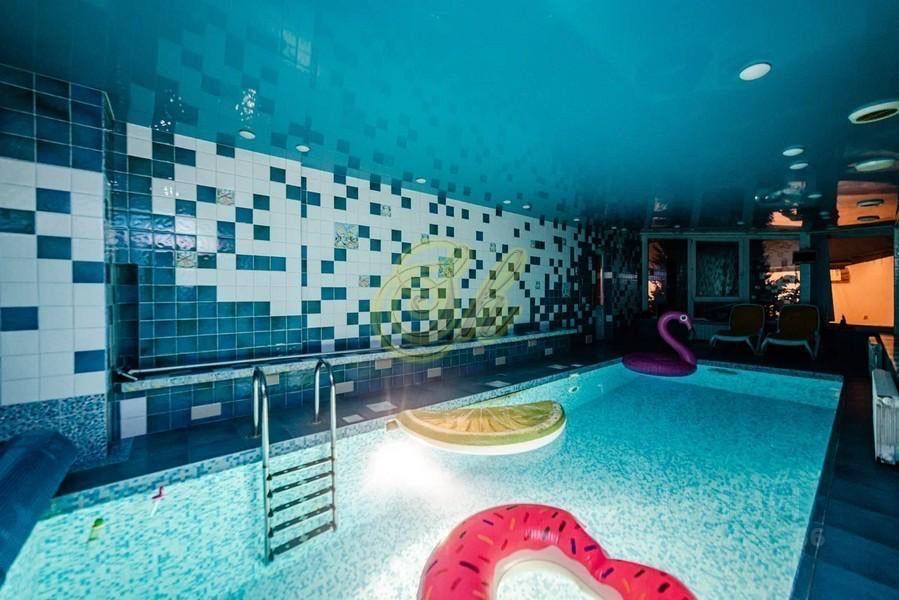 большой бассейн 8х2,60 м глубиной около 1,70 м с панорамными окнами. Музыкальная колонка и надувные круги и матрасы для безудержного веселья в бассейне.
