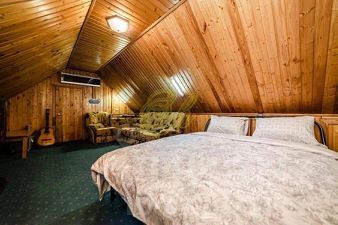 На 2 этаже зона отдыха с диваном и двуспальной кроватью.