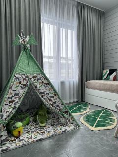 в детской комнате игровой домик Вигвам, столик для творчества;
