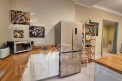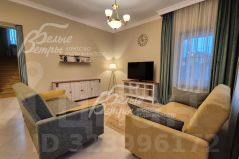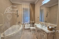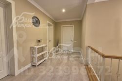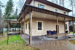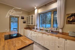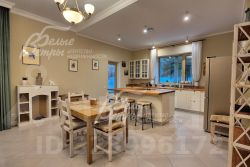 Мебель, оборудование: Дом полностью меблирован качественной современной функциональной мебелью: в гостиной мягкий гарнитур с тумбой для ТВ и комодом, столовая группа из массива на 6 персон. В трех спальнях большие двуспальные кровати, в т.ч. размером King Size, шкафные группы, комоды, гардеробные оборудованы системой хранения, в двух спальнях раскладные диваны, оборудовано рабочее место. Кухонный гарнитур с островом с полубарным столом и стульями, фасадами из МДФ белого цвета, столешницей из массива лиственницы и встроенной техникой: электр. индукционная варочная панель, посудомоечная машина (60см), СВЧ-печь с конвекцией Kuppersberg, тостер, чайник. Холодильник Side-by-side Nordfrost. Обеденный стол раскладной на 4-8 персон и другая кухонная мебель (столик, стеллаж, буфет). Стиральная машина Hotpoint с функцией сушки (на 8+5кг), пылесос, в гостиной телевизор LG 55 дюймов с функцией Smart TV, а также телевизоры в двух спальнях на первом и втор