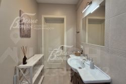 Описание внутренней отделки: Стильная отделка в современном минималистичном стиле. В отделке использованы материалы премиальных производителей: керамогранит, плитка с орнаментом, массив лиственницы, обои дорогой фактуры в нейтральных тонах, ламинатная доска..