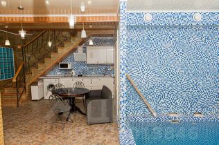 Шесть изолированных спален, четыре санузла, караоке зал, диско-клуб, 1-Квт звука. Осветительные, лазерные, дымовые установки, каминный зал, барбекю застеклена с мангалом внутри, тёплый бассейн 2,6*4,00 сауна на дровах, бильярд американка, два балкона на лес, три кухни со всей кухонной утварью и техникой, газовая духовка, посудомойка, садовые качели, теннисный стол.