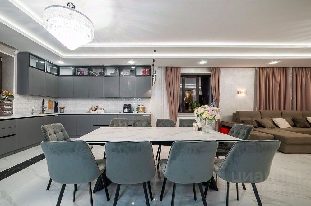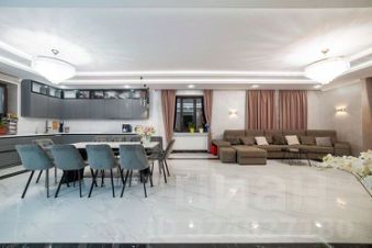 на первом этаже кухня-гостиная площадью 72 м2, для проведения банкетов на 25 персон.