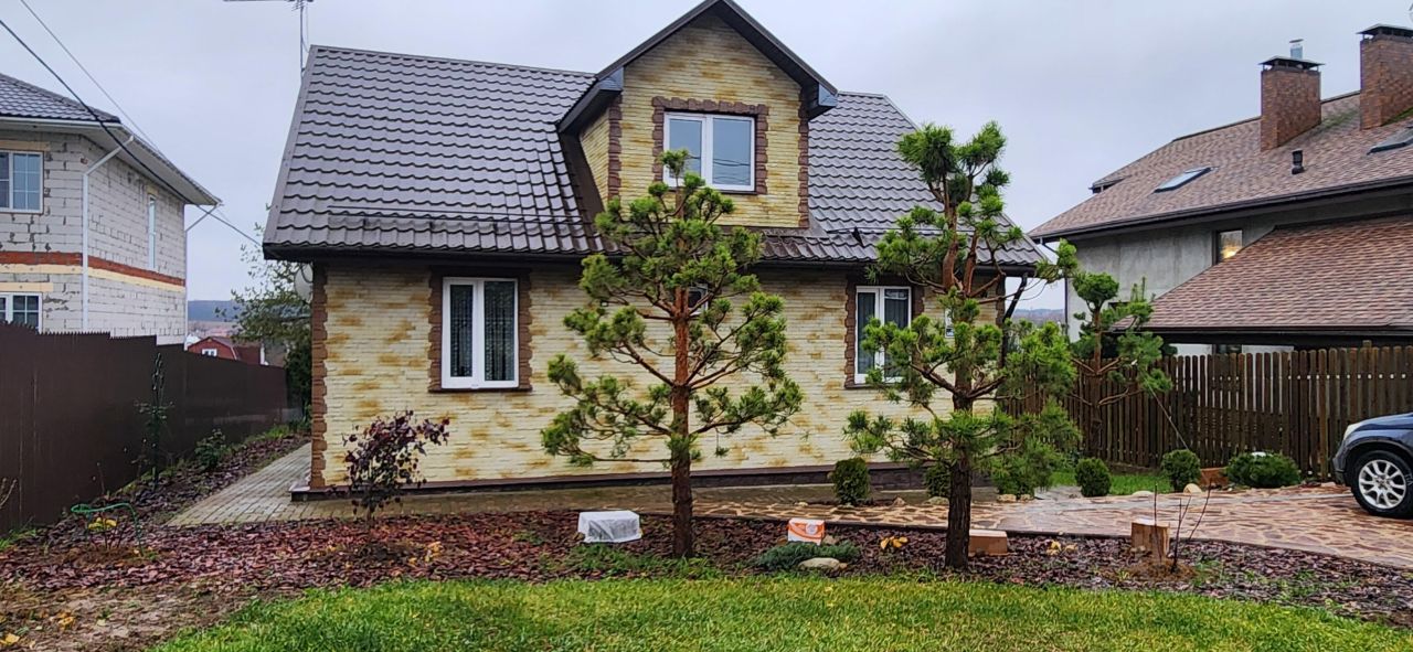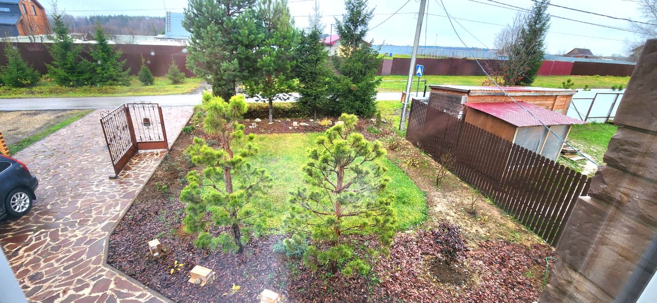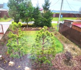 Участок 13 соток с газоном и деревьями обеспечивает атмосферу природного ландшафта.