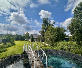 Ледяная горка на большом участке с соснами и елями, настоящая русская баня с прорубью, посиделки у камина- всё это ждет вас!