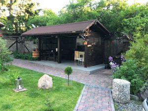 Территория совмещена с домом собственника, но у вас будет собственная зона, беседка, стационарный мангал, лужайка. Это очень тактичный человек, который не будет вас беспокоить.