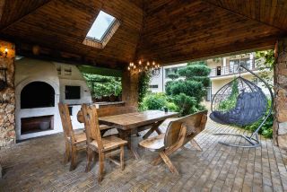 Для вашего комфорта есть Терраса, беседка с мангальной зоной, лесная прогулочная зона, парковка на 6 авто, гараж на 2 машины, батут для детей.