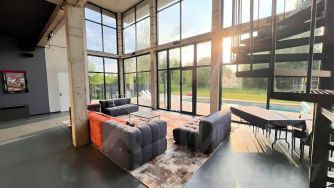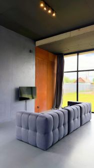 Сдается посуточно просторный 2-этажный дом с шикарной архитектурой в стиле Райта для проведения любых мероприятий: вечеринка, день рождения, свадьба, корпоратив, мастер-майнд, стратегическая сессия, тренинг, ретрит, фото- и видеосъемка, мальчишник/девичник общей площадью 500 м2 с панорамными окнами и высокими потолками 7 метров.