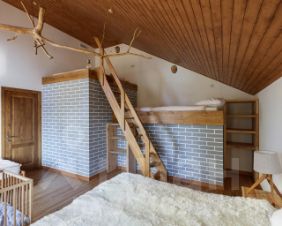 На 2 этаже: 6 спален, четыре спальни имеют двуспальные кровати и собственные ванные комнаты, возможна установка дополнительной или детской кровати. Две другие спальни позволяют разместить до 4 человек в каждой. Все кровати имеют ортопедические матрасы, подушки, одеяла, постельное белье застилается к вашему приезду, каждому гостю предоставляются тапочки, комплект полотенец и душевые принадлежности. В спальнях шкафы из кедра для одежды, тумбы, удобные розетки у кроватей.