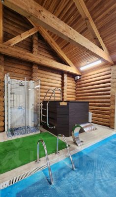 2-х этажный коттедж 430м2 с открытой верандой и с двумя комфортными зонами отдыха, бассейн 14 метров с противотоком и подсветкой. Купель высотой 1,8м. Обливное ведро. Хамам. Русская баня. 3 душевые кабины. 2 санузла, по одному на этаже.4 спальных зоны на 12 человек, стиральная машина, кухня с полным оснащением(вся посуда которая нужна для готовки, духовой шкаф, варочная панель, посудомоечная машина, чайник и тд. Также на первом этаже стоит огромный 3D SМАRТтелевизор на котором можно поиграть в sоny рlаystаtiоn 4.