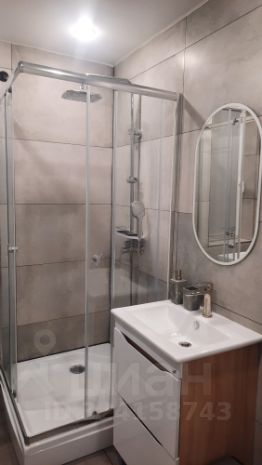 санузел с душевой кабиной и стиральной машинкой