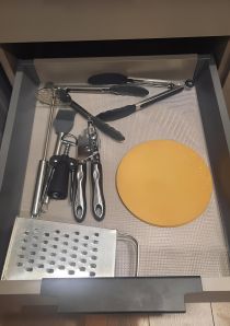 полный набор посуды на 6 персон, кастрюли, сковорода, столовые приборы, всё необходимое для приготовления и сервировки стола.