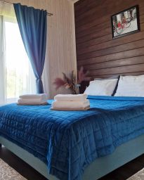 Дом рассчитан на 6 спальных мест. В доме имеется все необходимое для комфортного проживания : 2 спальни и гостиная зона, большая кухня с посудомоечной машиной и другой бытовой техникой и посудой, ванная, туалет, телевизор, музыкальная Bluetooth-колонка, WiFi. На территории располагается : русская баня, оцилиндрованное бревно, печь дровяная (любые веники, кроме березовых), горячая купель, мангальная зона, летний бассейн.