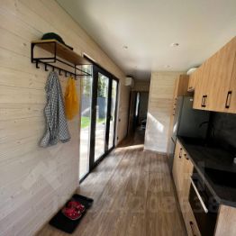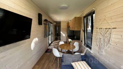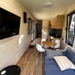 Гостиная с раскладным диваном, спальня с двуспальной кроватью, теплые полы по всему дому.