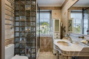 Кирпичный коттедж полностью готов к проживанию: просторная гостиная с камином наполняет дом особой атмосферой уюта, кухня-столовая выходит на террасу и благоустроенный двор, где можно наслаждаться отдыхом в кругу семьи. Продуманная планировка обеспечивает удобство каждого члена семьи: мастер-спальня с собственной гардеробной, дополнительные спальни, несколько санузлов, комнаты для персонала, постирочная, гараж и функциональные зоны хранения.