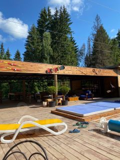 Атмосфера тёплого шале, панорамные окна, мягкие лаунж-зоны и полная приватность — здесь легко провести идеальные выходные или яркий праздник