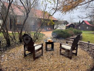 На 1м этаже главного дома - большая гостиная/кухня с печкой, две полноценные спальни.