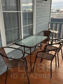 Просторная веранда со стульями и столом, где можно попить горячий чай и насладиться закатом.