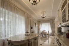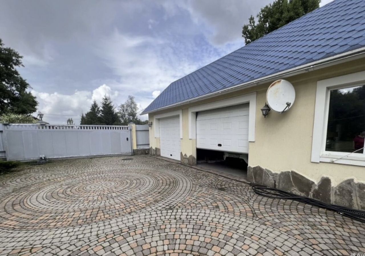 Дорожки и парковка вымощены брусчаткой, по всему участку установлено уличное освещение.