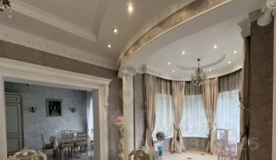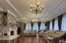 Фундамент ленточный/монолитная плита, стены кирпич, перекрытия ж/б плиты, фасад - декоративная фасадная плитка, кровля металлочерепица, деревянные окна, с двойными стеклопакетами, В доме установлены кондиционеры.